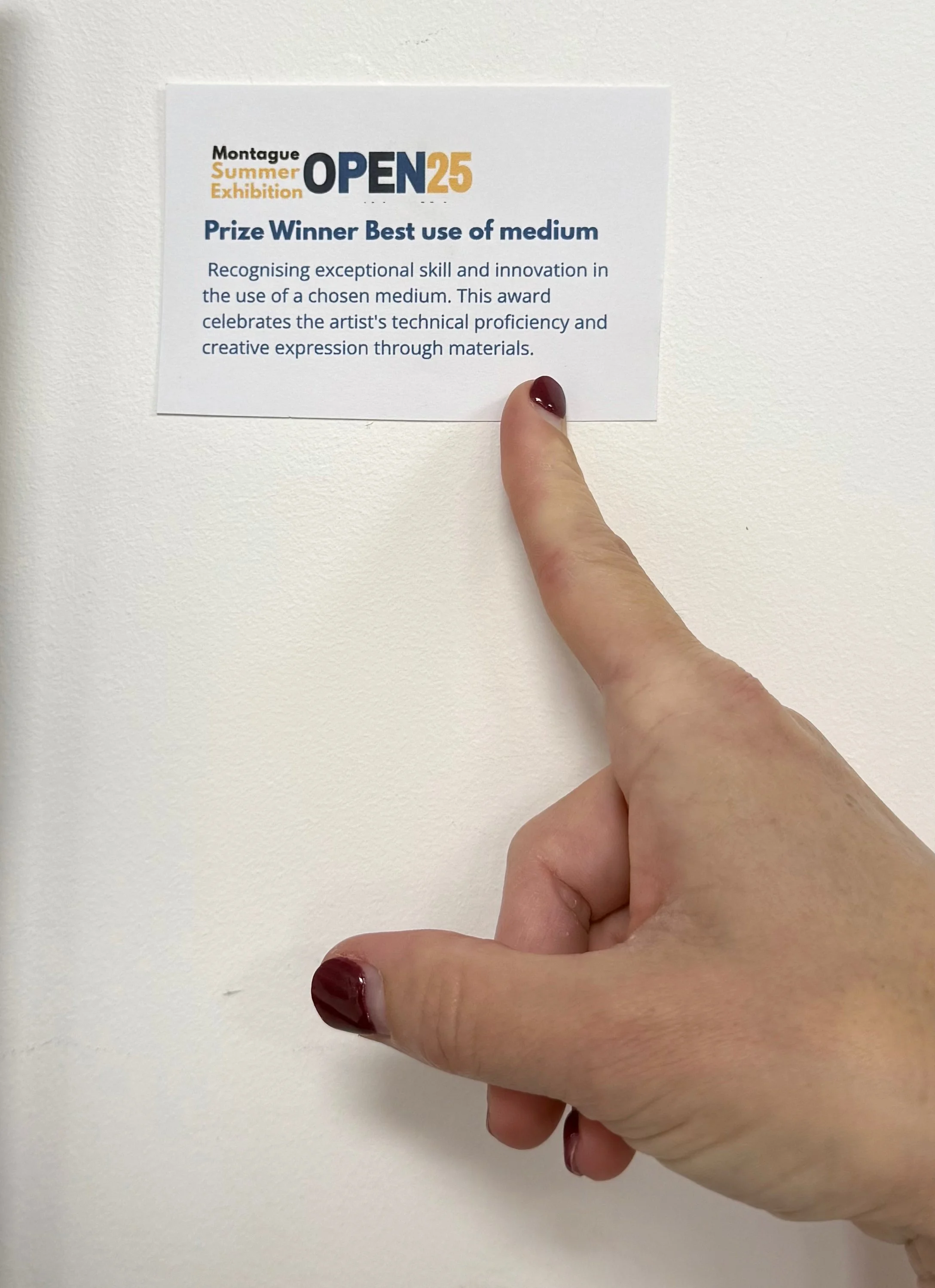 I was delighted to have both of my submitted pieces selected for the Summer Open Exhibition at the excellent Montague Gallery in Worthing. I was even more pleased that ‘In the Reeds’ was selected as one of the ‘Best Use of Medium’ prizewinners.